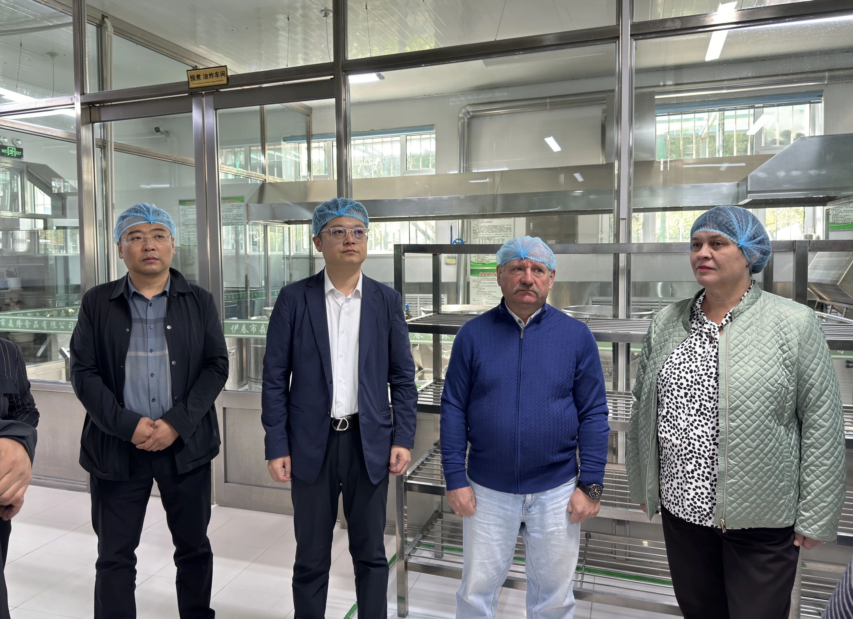 俄罗斯友人一行首先来到伊春市森隆食品有限公司,在工作人员的引导下,先后参观了生产车间、产品展示区,详细了解罐头从原料筛选、加工生产到包装出厂的全流程。当看到林蛙、榛蘑等本地特色食材被精心加工成各类罐头产品时,友人们不时驻足询问,对工厂依托本地资源发展特色产业的模式表示赞赏。