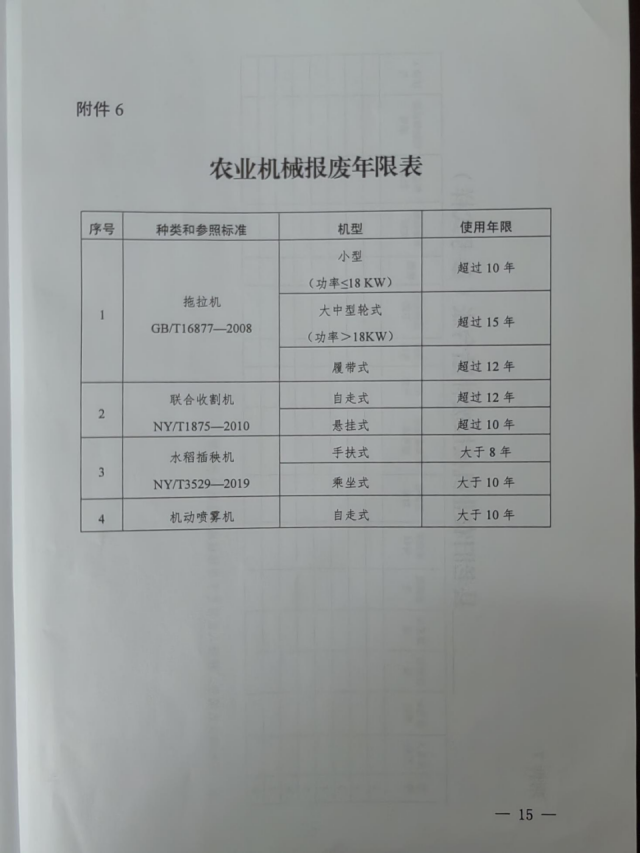 2.报废农业机械的使用年限等技术条件参照《农业机械报废年限表》(附件6)。