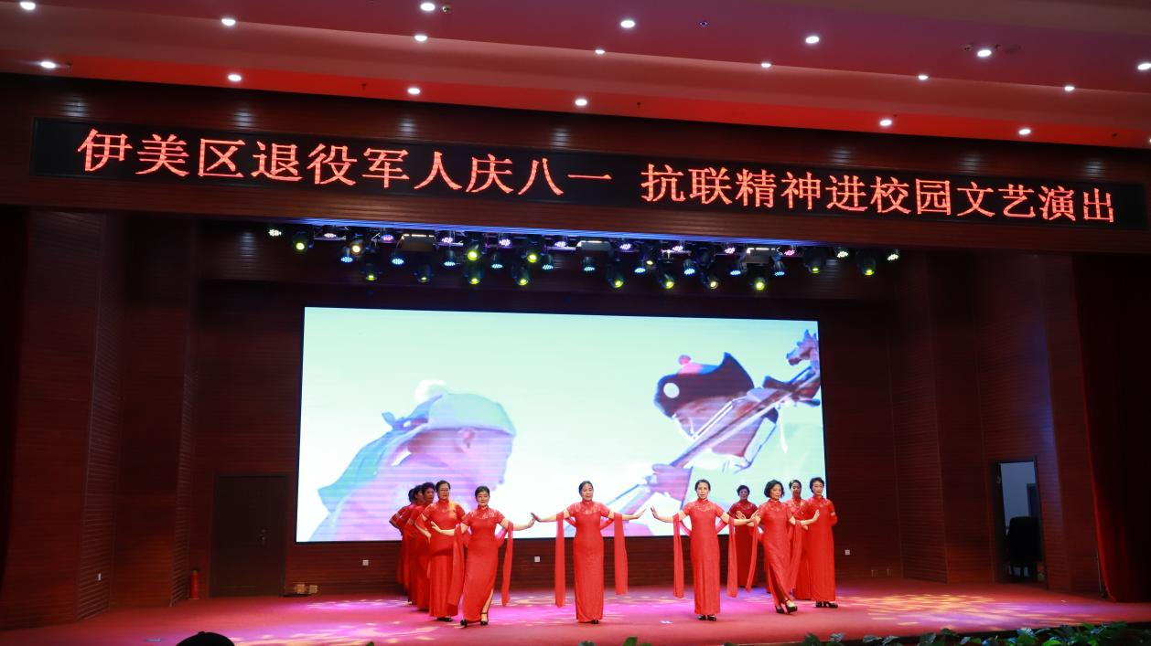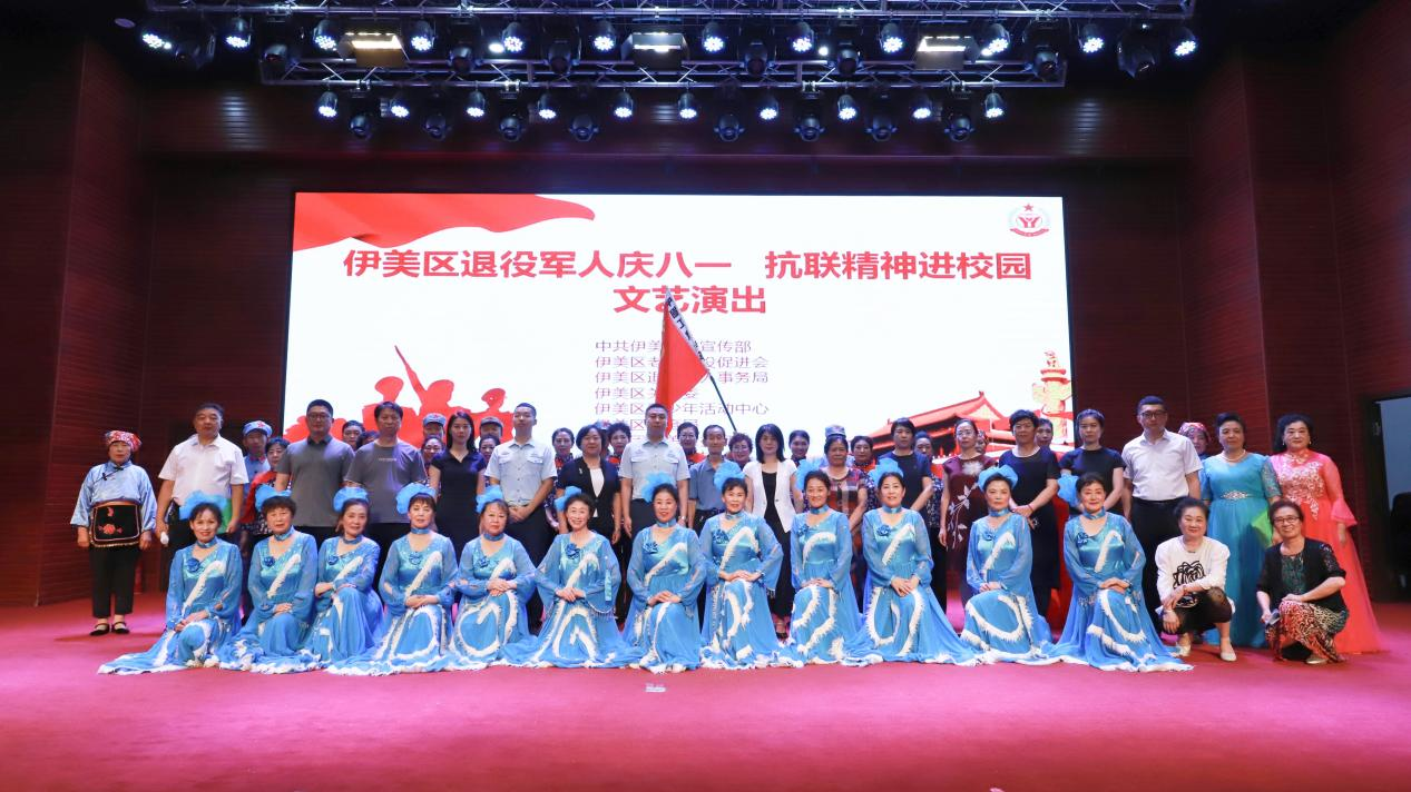 2024年7月26日下午15时,八一建军节前夕,由伊美区委宣传部、团区委、区老促会和区退役军人事务局等9个部门,在区青少年活动中心联合举办伊美区退役军人庆“八一”抗联精神进校园文艺演出,退役军人及百余名师生观看文艺演出。