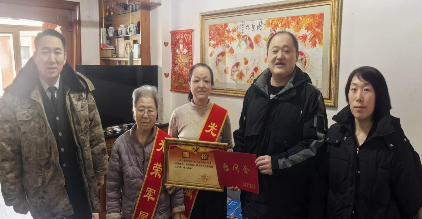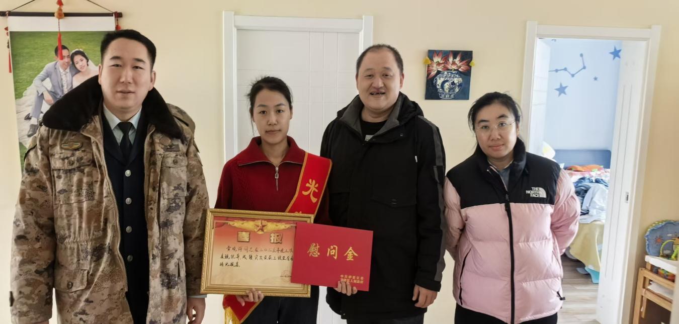为大力弘扬拥军优属优良传统,进一步营造“一人参军、全家光荣”的浓厚社会氛围,2月以来,伊美区退役军人事务局、区人民武装部和相关街道办事处联合开展“喜报送到家,尊崇暖人心”活动,为7名荣立三等功、三级荣誉表彰现役军人家庭送立功喜报、慰问金和慰问信,为11名“四有”优秀军官、士兵和文职人员的家庭送立功喜报,让军属共享军人荣光,共同见证军人荣耀。