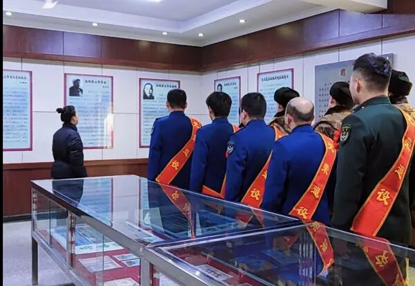活动在庄严国歌声中开启,全体人员整齐肃立,向长眠于此的烈士默哀致敬。随后,返乡退役士兵与预定新兵面向纪念碑,庄严宣誓,誓言铿锵,响彻陵园,彰显着他们坚定的信念与无畏的担当。献花环节,鲜花寄托哀思,默哀表达敬仰。在英烈纪念馆内,新兵们透过历史照片和实物展陈,感悟英烈精神。