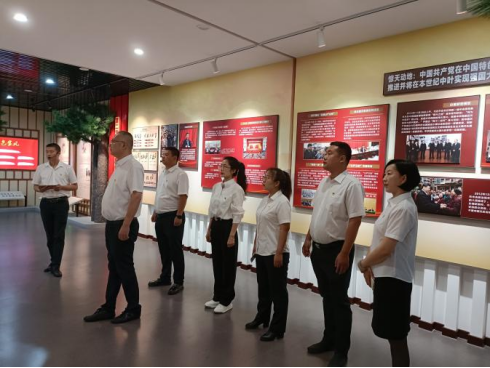 参观结束后,党员干部们再一次庄严地举起右手,面对党旗党徽重温入党誓词,铮铮誓言、字字千钧,既是初心使命的庄严承诺,更是接续奋斗的赤诚告白。