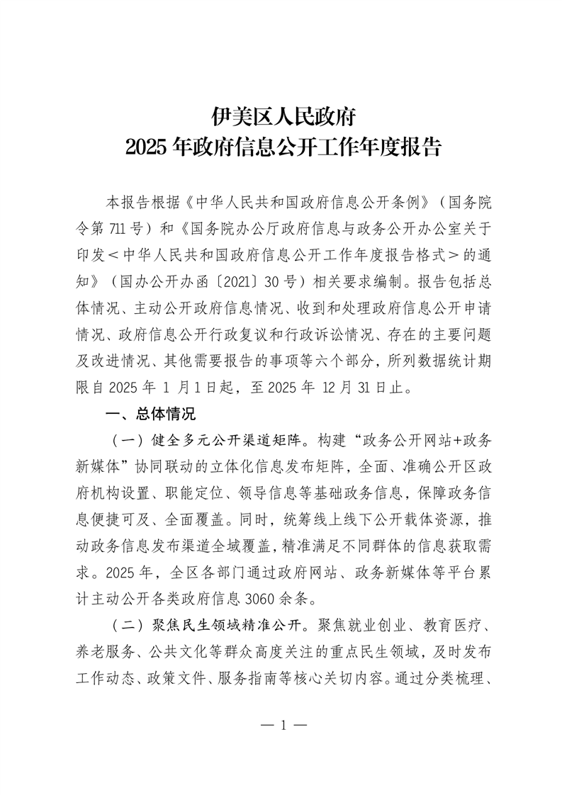 伊美区人民政府2025年政府信息公开工作年度报告