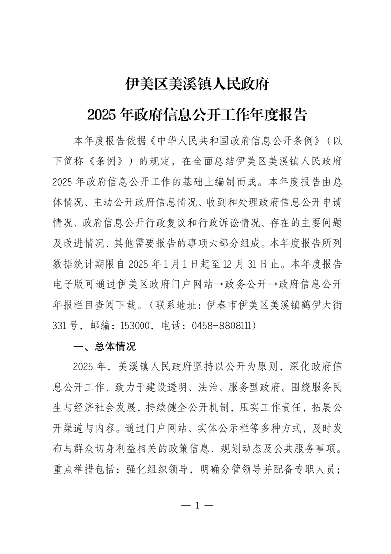 伊美区美溪镇人民政府2025年政府信息公开工工作年度报告