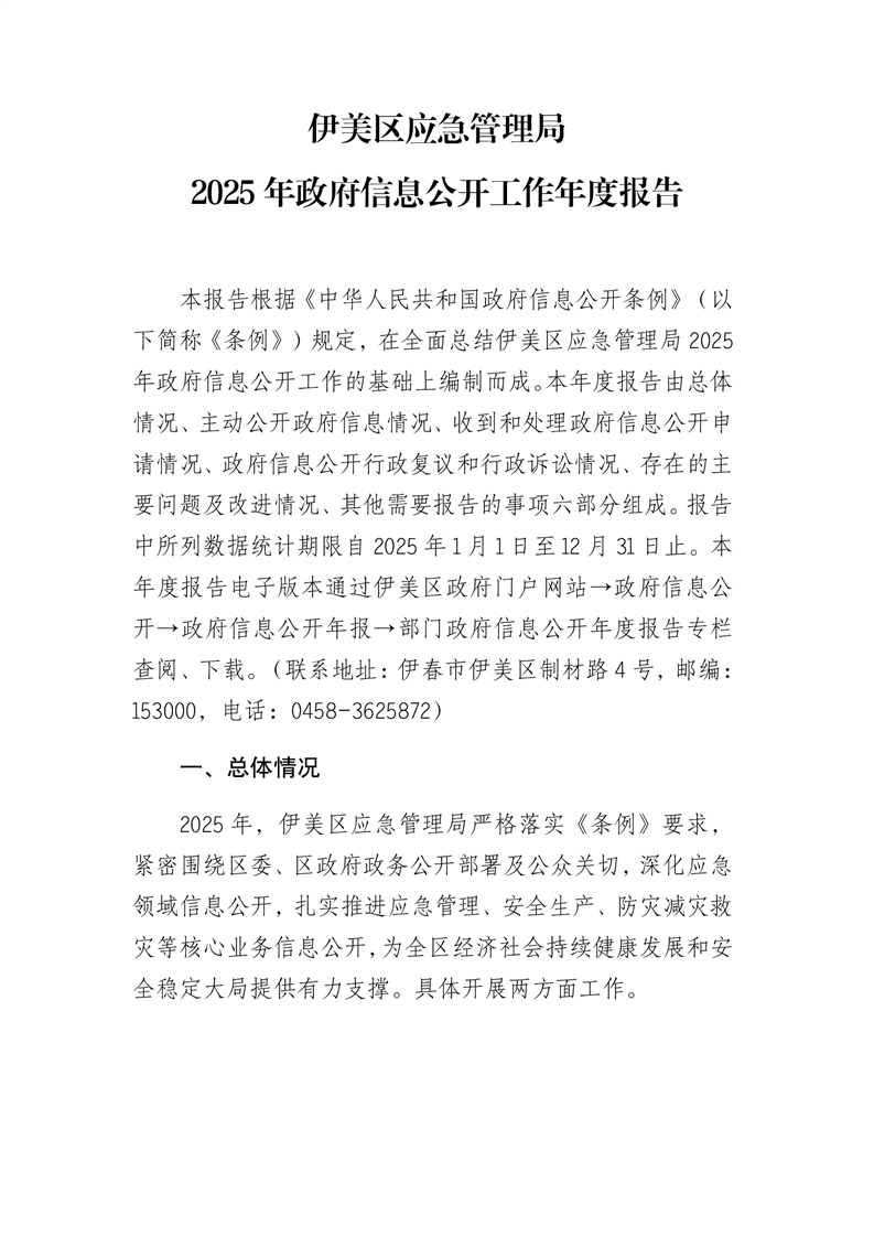 伊美区应急管理局2025年政府信息公开工作年度报告