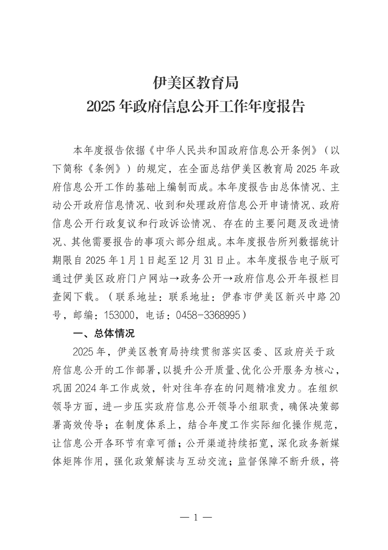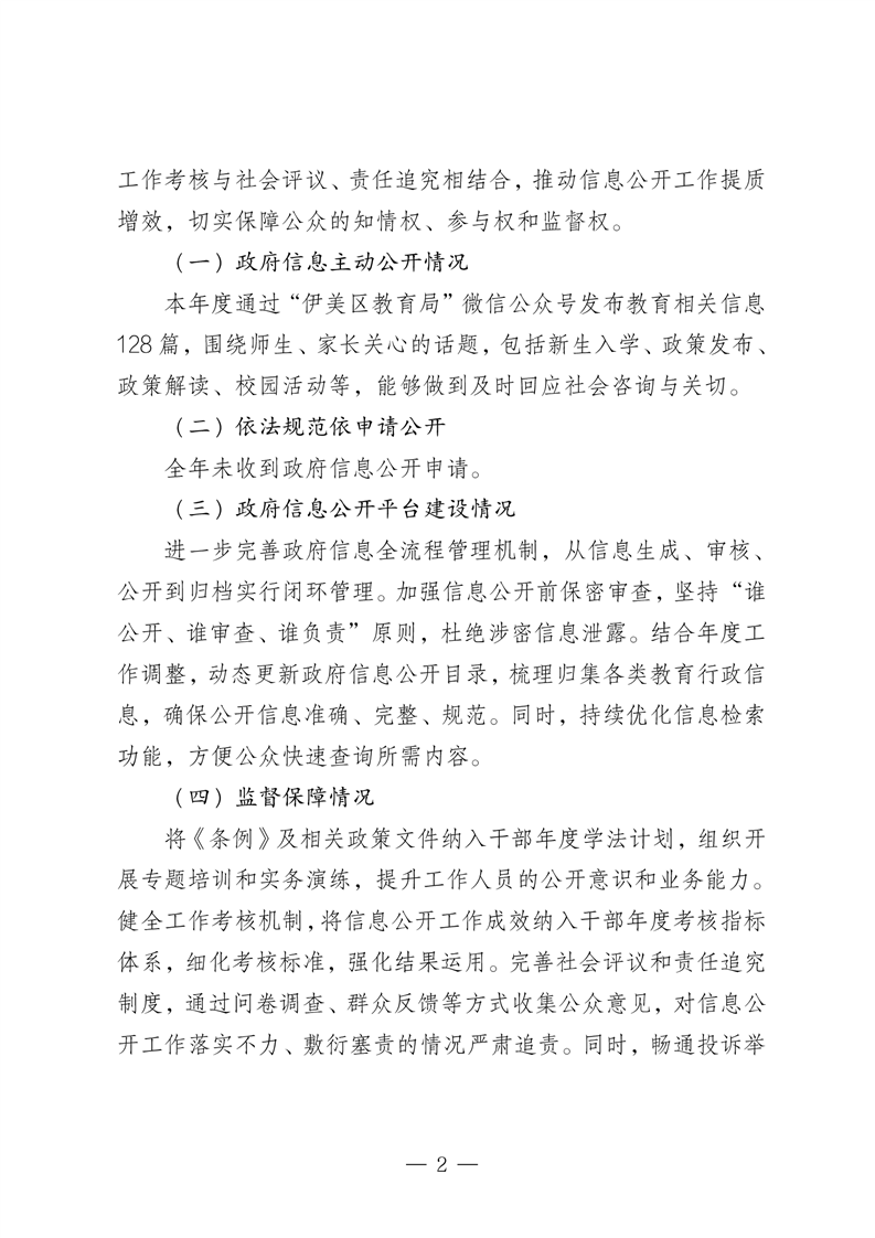 伊美区教育局2025年政府信息公开工作年度报告